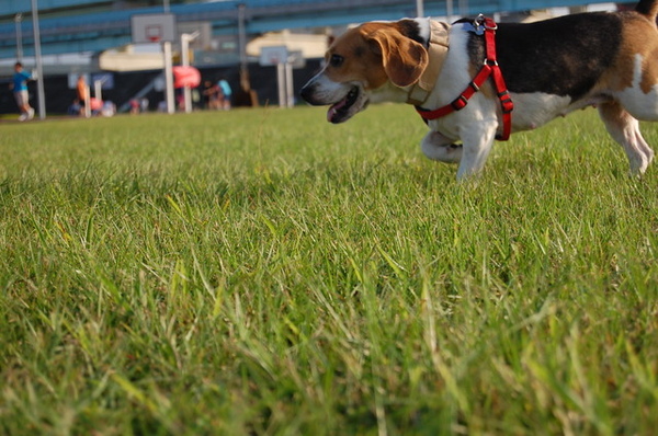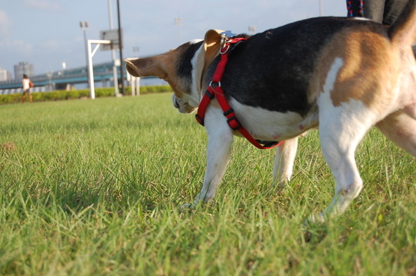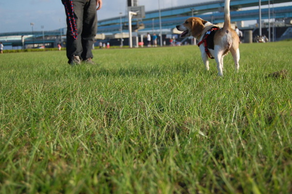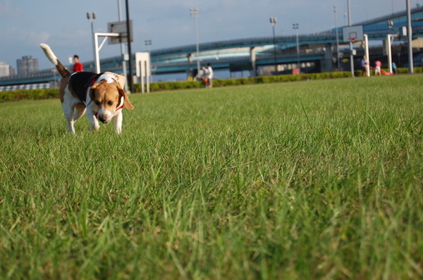 不過這小妞今天怪怪的~就是不願意踩在草地上