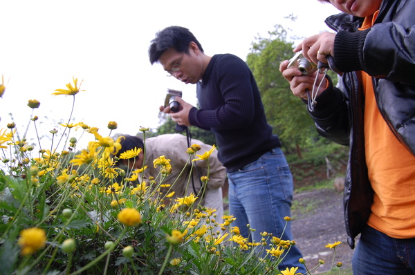 我也很認真的再拍可愛的小菊花~一抬頭看到這景象~