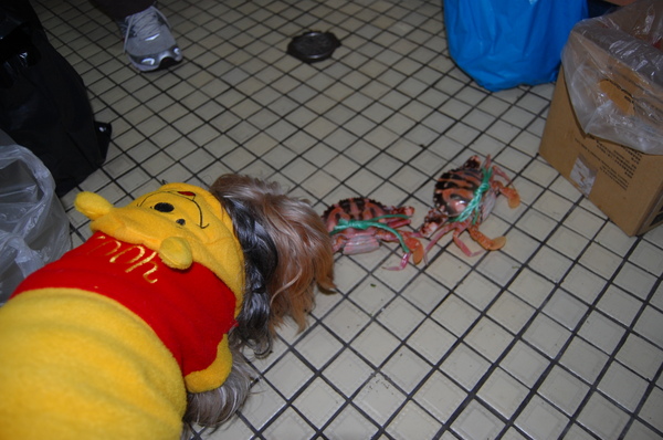 王阿呆對螃蟹好奇的不得了~狂叫狂聞狂抓~