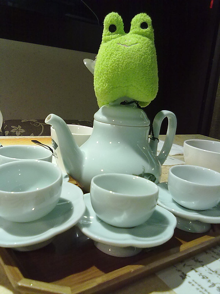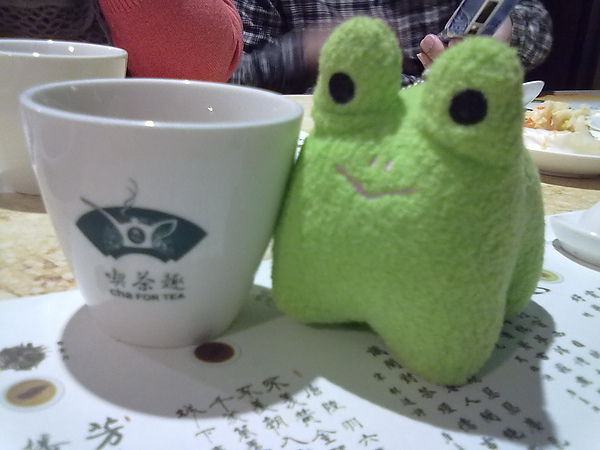 今天的小跟班~小綠青蛙~跟天仁茗茶的杯子來張合照~