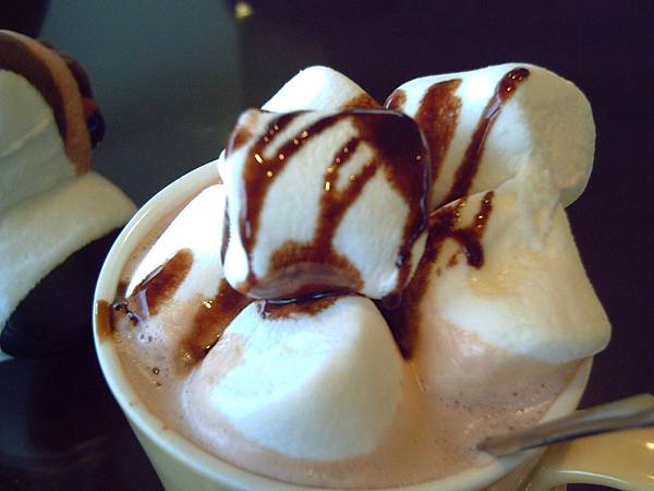 這杯子裡面有好多顆超大的棉花糖~真不知道該把棉花糖融在飲料裡喝~還是把糖直接吃掉XD
