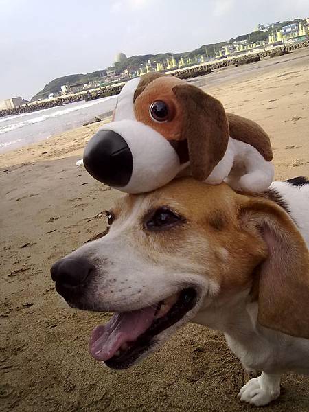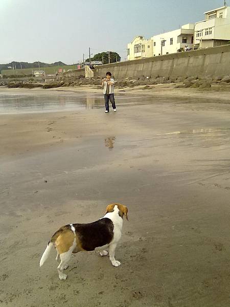 在海邊實在沒啥在拍照~只顧著跟阿笨玩水~阿笨今天有下海游泳喔~~