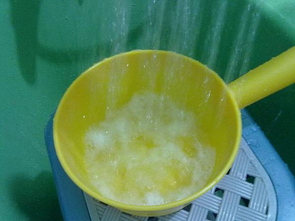 不過幫阿笨洗澡的老爺~皮膚很敏感~或許是在稀釋的時候有沾到~所以他說他的手洗道最後開始有點刺刺癢癢的~
