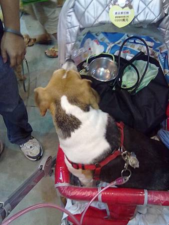 這攤位很小~所以推車推不進去~阿笨在攤位外面等著我~