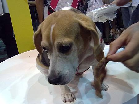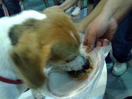 主持人牽的一隻小約~踩在我腳上想要吃阿笨眼前的那塊肉~