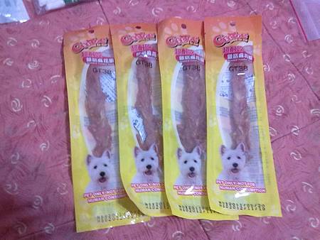 似乎是起士條的東西~4條$100~送了4隻煙燻潔牙骨~