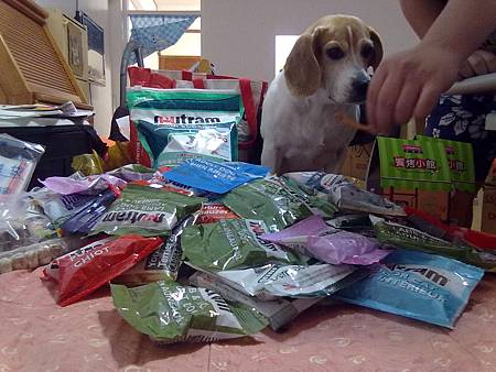 這樣的戰果~連阿笨都很滿意的在旁邊審查~