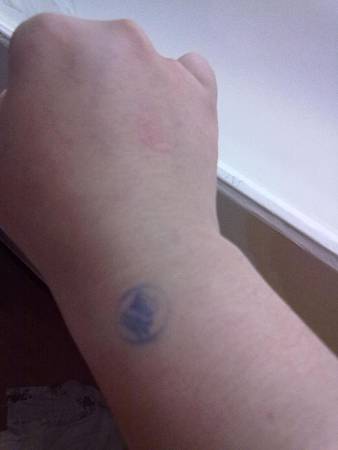 手臂上還有前一天的紅色章~手腕上的則是最後一天的藍色章~