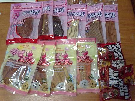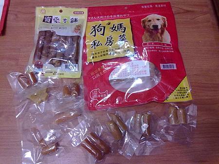 狗媽的私房菜~買了一包鴕鳥肉乾~送一包寵愛本舖~跟一把下面透明包裝的試吃~$180