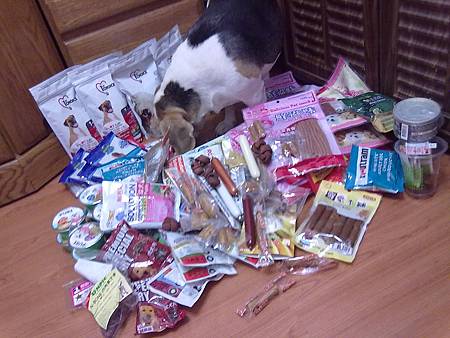 後來就都撒貓咪的~老爺就放棄了~(淡粉色系的都是貓咪吃的....)