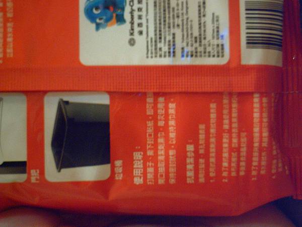 抽出一張看起來有壓印的濕紙巾(比抽取式衛生紙大一點點)