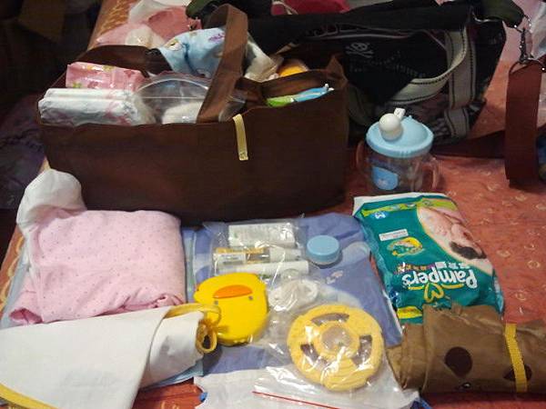 (二寶出來後 我的媽媽包是不是要變成兩人份啊!?看來我該準備個旅行箱了.....)