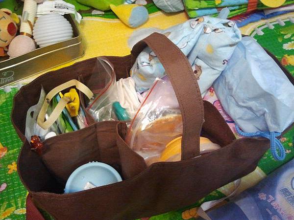 現在一歲多了~媽媽包整個大瘦身~雖然還是很大包~但是帶的哩哩叩叩少了好多喔~