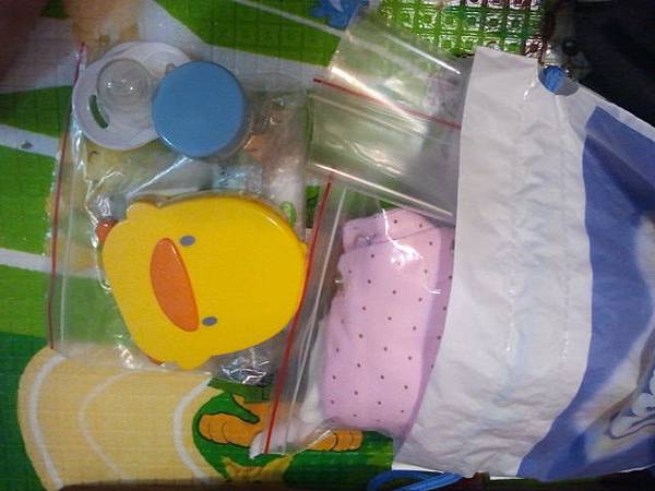 當然隨著外出時間跟目的地不同~帶的東西也完全不同瞜~現在出門 只要帶著尿布跟濕紙巾就敢亂亂跑了~XD
