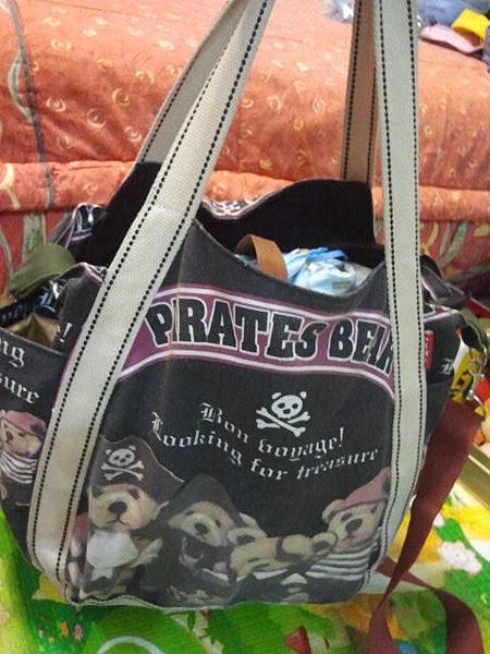 一年多來~還是這個海盜熊的包包用了最順手~不知道有沒有可能連二寶的用品一起吞下去XD