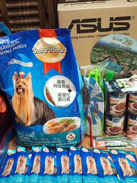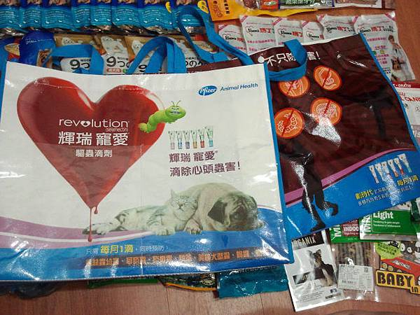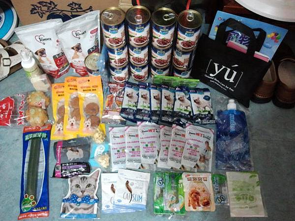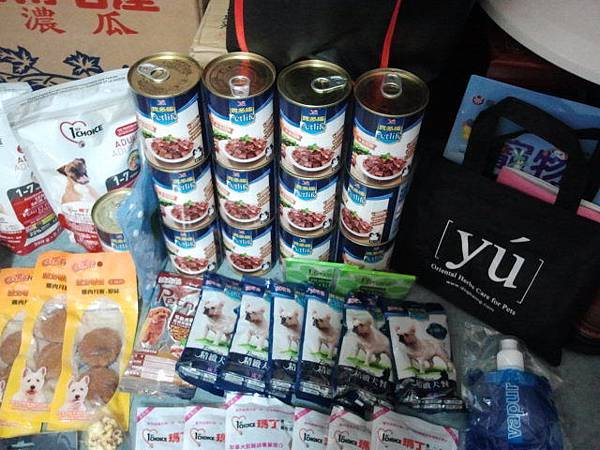 右上角的YU黑袋子跟水壺是用悠遊卡或這次寵物展發行的一個狗掌晶片卡到各展場打卡後拿到的贈品~