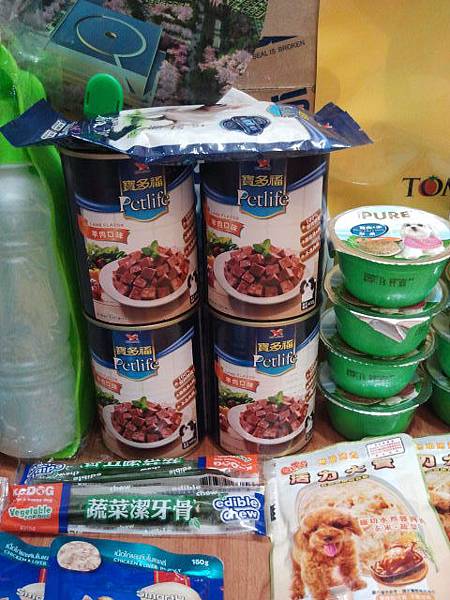 所以去買罐頭的時候可能S G也不好意思吧~所以多塞了幾包試用包跟兩本便條紙本給我還有攜帶型摺疊碗~最後 一位寶多福的員工更大心~直接偷偷塞了一罐罐頭給我~還有新產品的試吃包~