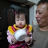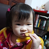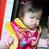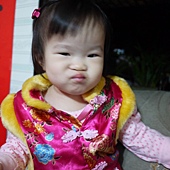 今年過年沒有特地幫她準備新衣服~因為沒什麼想法~原本打算要拿去年我乾媽買的節慶衣服給她穿~結果跟老爺溝通不良~來不及在過年前洗好~所以就作罷啦~不過今年有讓她穿新鞋戴新帽~