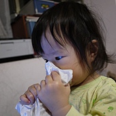 有一天穿了短袖的衣服睡覺~隔天就開始流鼻涕了~為了讓她好睡覺~老爺都會用吸鼻涕器幫她吸~原本她都很抗拒~但每次吸我們都會稱讚她好棒喔~結果 現在變成晚上睡覺或是她想到~就自己去拿來要人家吸~自己在那邊拍手開心~