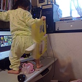 最常走的路線就是從房間走到客廳在走到廚房的冰箱前停下~幫她開了冰箱~拿到多多跟吸管~才願意轉身走進房~