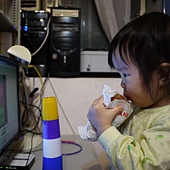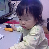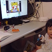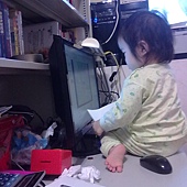 這個月的小雞蛋似乎是中了電腦優吐比的毒~飯都還沒吃完~就急著要進房間看電腦="=