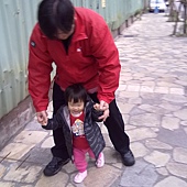 最近走路穩定很多~而且喜歡(一定要)人家在後面牽著他走~小手牽大手~一手牽一手~一定要牽好了才肯走~沒牽好她還會生氣喔~