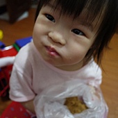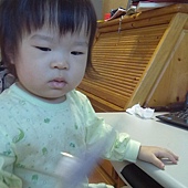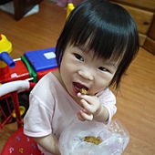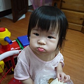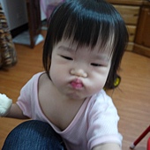 最近有一個挺搞笑的表情~就是皺眉頭盯著人看~這表情到目前為止我還沒拍到照片~但是真的很好笑~只要稍微念一下她~她不高興就會出現這個表情~原因~因該是學我的~因為每次看影片看到後來不管哪一部都不要~搞得我都很沒耐心的盯著她看~久了他就學會這表情了~XD(老爺碎碎念好久啊~~~~)