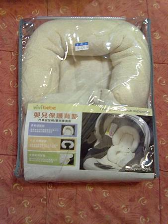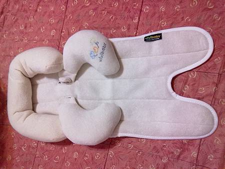嬰兒保護背墊~作推車跟安全坐椅的時候~發現小雞蛋的頭會隨著車子搖擺~或者呈現很不舒服的角度~所以挑了一個最便宜的墊子~正反兩用~讓她睡覺能舒服點~