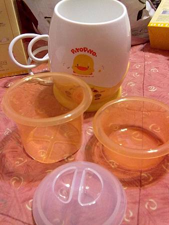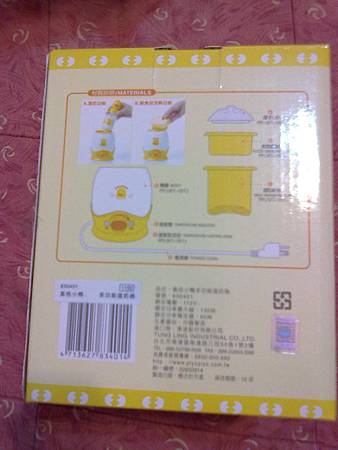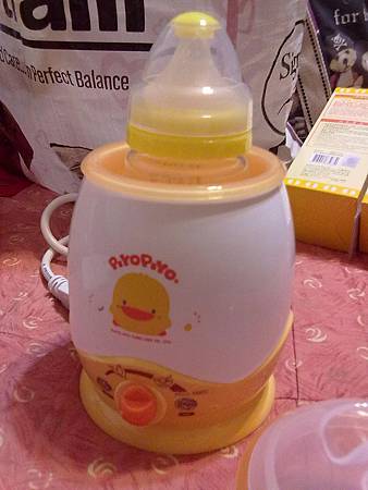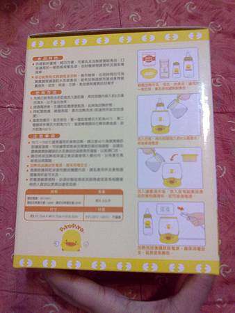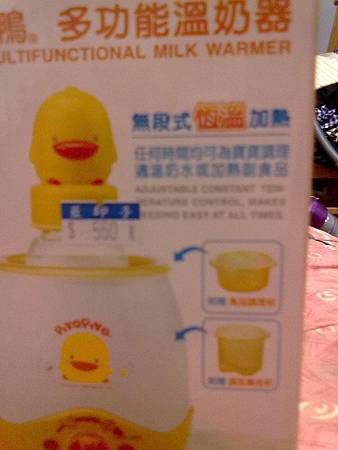 第一個先買的就是黃色小鴨的溫奶器~只因為我娘一直說~天氣變冷了~不要給小孩喝冷的牛奶~要喝熱的~每次泡熱水加熱實在太慢~所以挑了這台號稱多功能的溫奶器~加上我們的寬口徑奶瓶都可以放下~之後還可以溫熱副食品~就買了這一台~