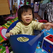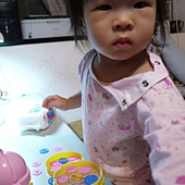 每天最期待洗澡時間~會自己坐在椅子上等玩水~還會自己脫掉上衣~(而且是動作非常迅速的脫掉)~看我洗臉也會想模仿~不過老是把泡泡搓在自己的眼睛 然後大哭= ="也不喜歡洗頭~買了洗澡帽也不肯帶~每次洗頭都像有家暴一樣....