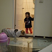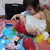 買了一個帳篷給她~硬是要所有人都擠進去裡面陪她一起玩~還不給出來= ="~還好買的這個帳篷很大~一家三口塞進去沒問題~不過我跟老爺都ㄍ一ㄥ得很累就是了~