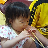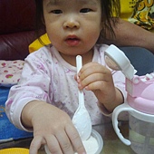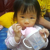 最近愛上喝甜甜的飲料~巧克力牛奶、阿華田、優酪乳、養樂多.....一天喝好多~連鮮奶也會喝~但是相對的水就喝得少了~"~這點就讓我有點頭大~或許是因為幫她買了學習杯很好用~所以整天想到就要走到廚房去開冰箱~