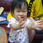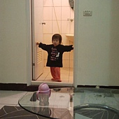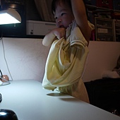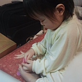 對了~這個月超愛自己脫衣服~還想要自己穿 不過通常都穿不上去 然後就自己在那邊生氣~XD