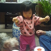 這個月已經可以放手自己走路了~雖然走的不是很穩 搖搖晃晃的~但是已經越走越遠了~(媽媽整個好開心阿~)只是在家裡還常常要我牽著要我跟著她走~
