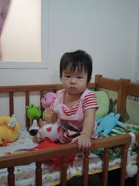 看到陌生人出現在她的地盤~緊張得躲在小床上遠觀~