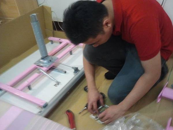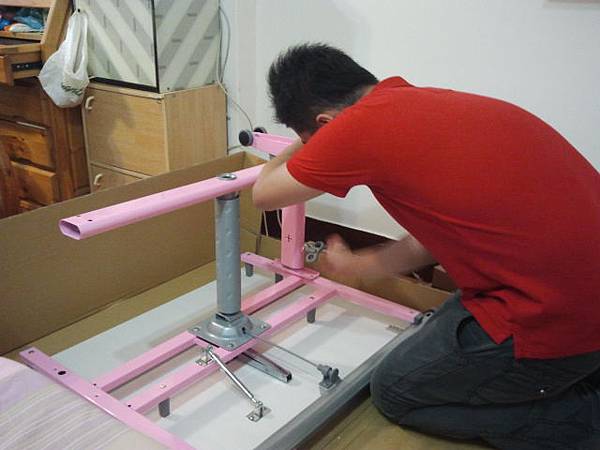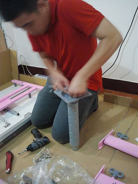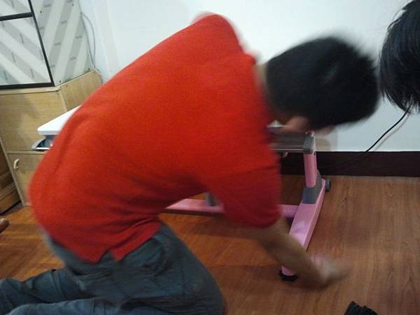 照片不多~因為小雞蛋很怕生~看到陌生人在房裡超緊張~而且手機記憶體又不夠 所以只能拍 幾張帥哥業務在組裝書桌的照片~