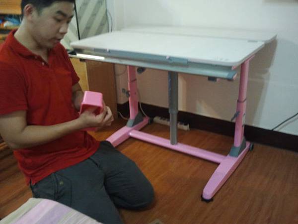帥哥在講解怎麼操作書桌~(如何讓她長高變矮~)跟一些注意事項~