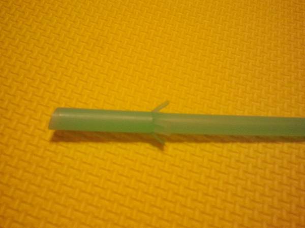 這個吸管的特別處就在於這四片傘狀倒鉤處~讓吸管插入飲料後不容易被拔出來~