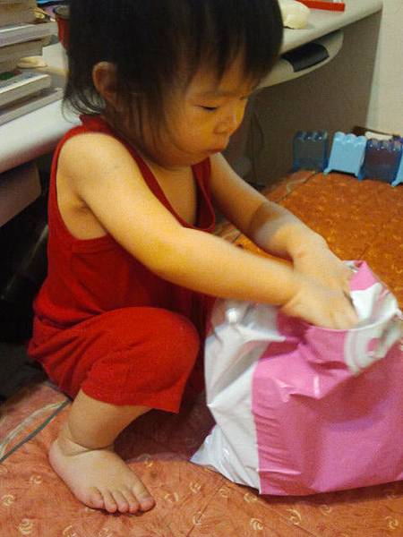 看看這位小妞比我還迫不及待的想拆開包裝呢~