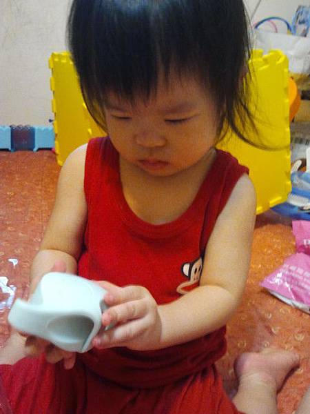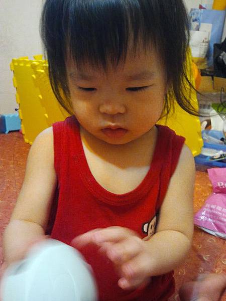 搞不清楚這是什麼東西~小雞蛋研究了很久~(不能讓媽媽先研究看看嗎!?)