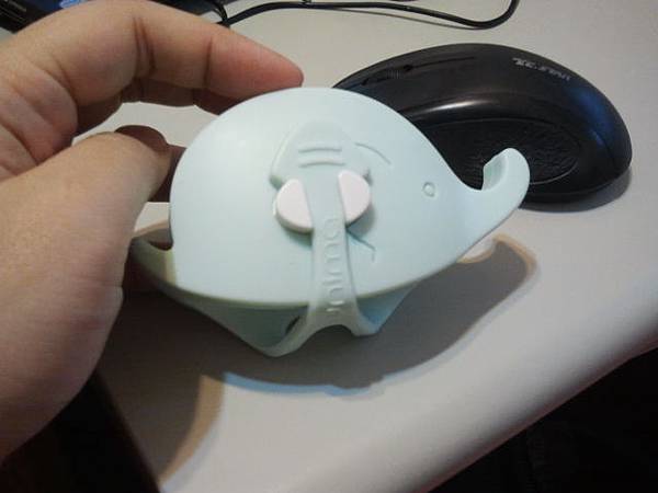 原來大象的背上塑膠的部份按下就有LED的閃光~總共有三種閃燈模式~