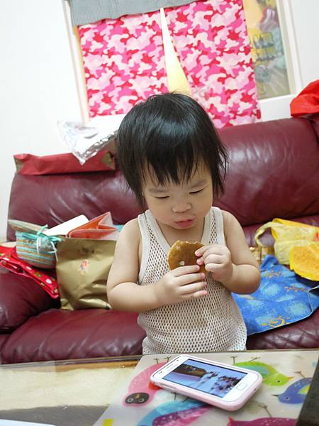 還不忘要拿給一直在拍照的媽咪吃~