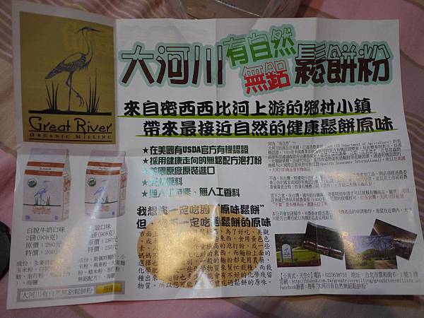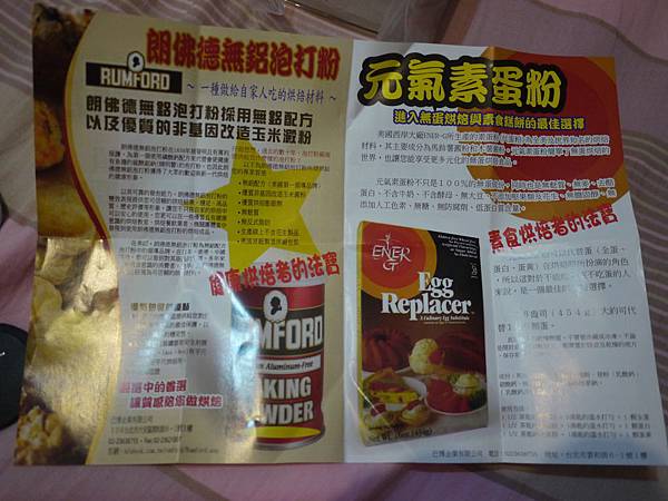 隨包附上的DM~有鬆餅粉的介紹~背面還有其它商品的介紹~都強調是沒有含重金屬成分的喔!