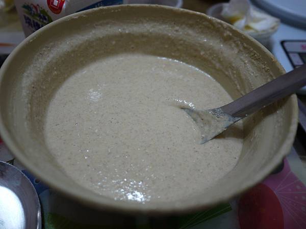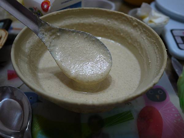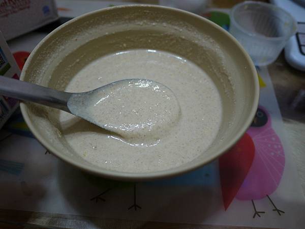 第二次的麵糊~異想天開的想要煎厚鬆餅~所以想說把麵糊調濃一點~(當兩個孩子的媽之後真的變笨了...)