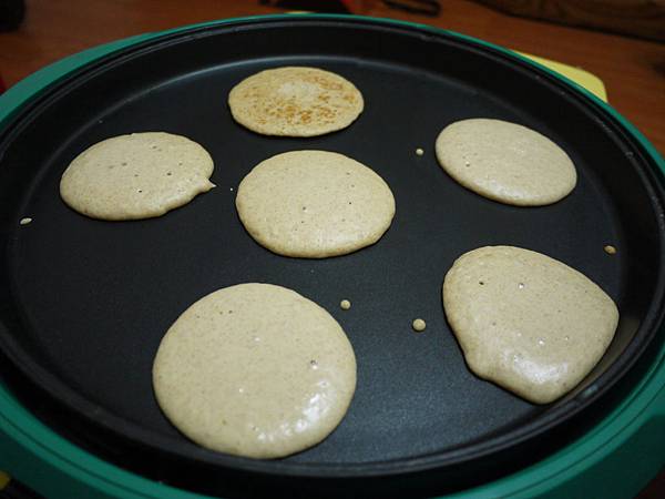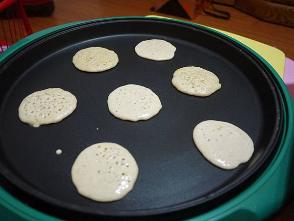 找不到失蹤很久的鬆餅機~只好拿出這個在冷宮很久的電烤盤~不然在廚房用平底鍋一個一個煎我馬上就沒興趣了~