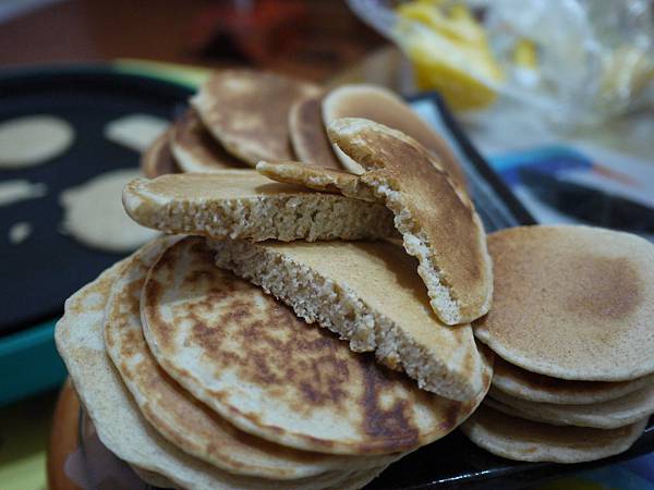 第一次的麵糊煎出來的樣貌~用電烤盤煎的非常嚴色不均...不知道他的發熱點在哪裡~所以都煎的不太漂亮~