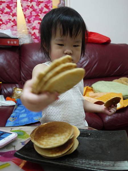 作小一點的鬆餅~不然我家小雞蛋不知道會怎麼糟蹋食物~