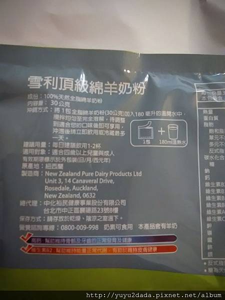 這次從痞客邦申請到的試喝是-《雪利頂級綿羊奶粉》