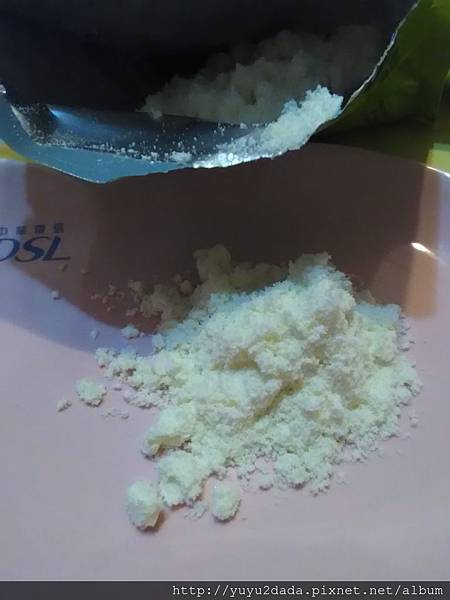 奶粉細緻,淡淡的鵝黃色,有特別的奶香味,跟一般的牛奶粉香味不太一樣,油味比較濃了一點點。