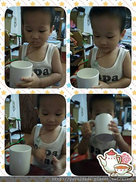 我自己喝不好拍照~所以請出我們家對奶接受度最高的小扭蛋來試喝~不過他大哥看手機正開心~所以沒看鏡頭= ="